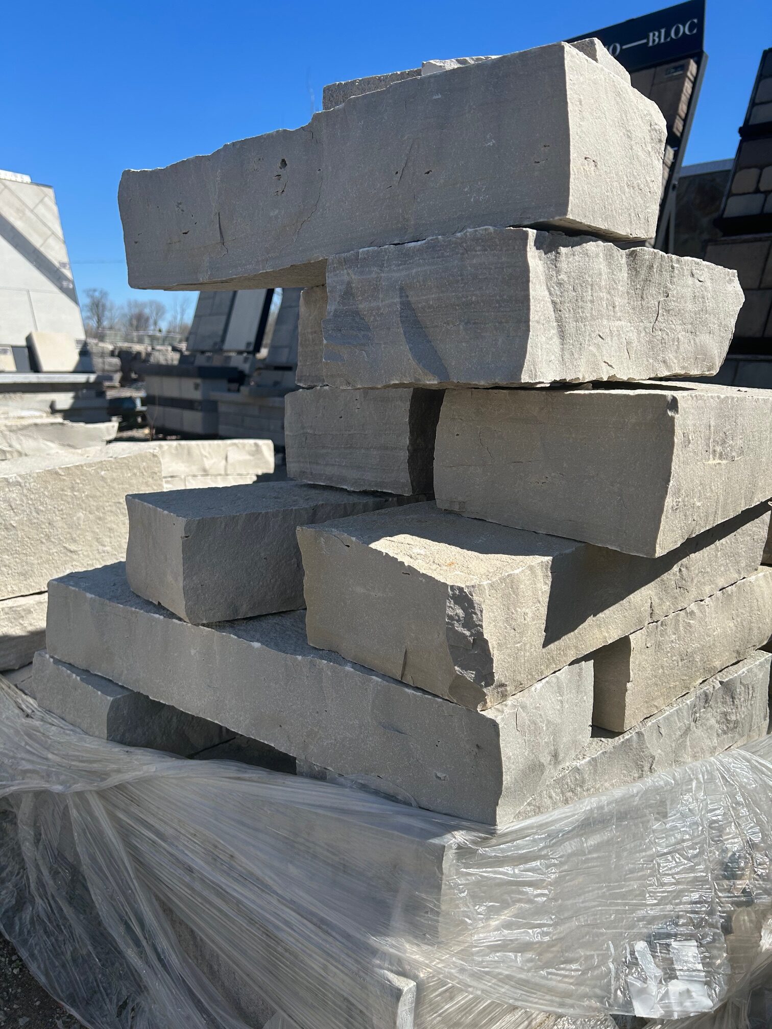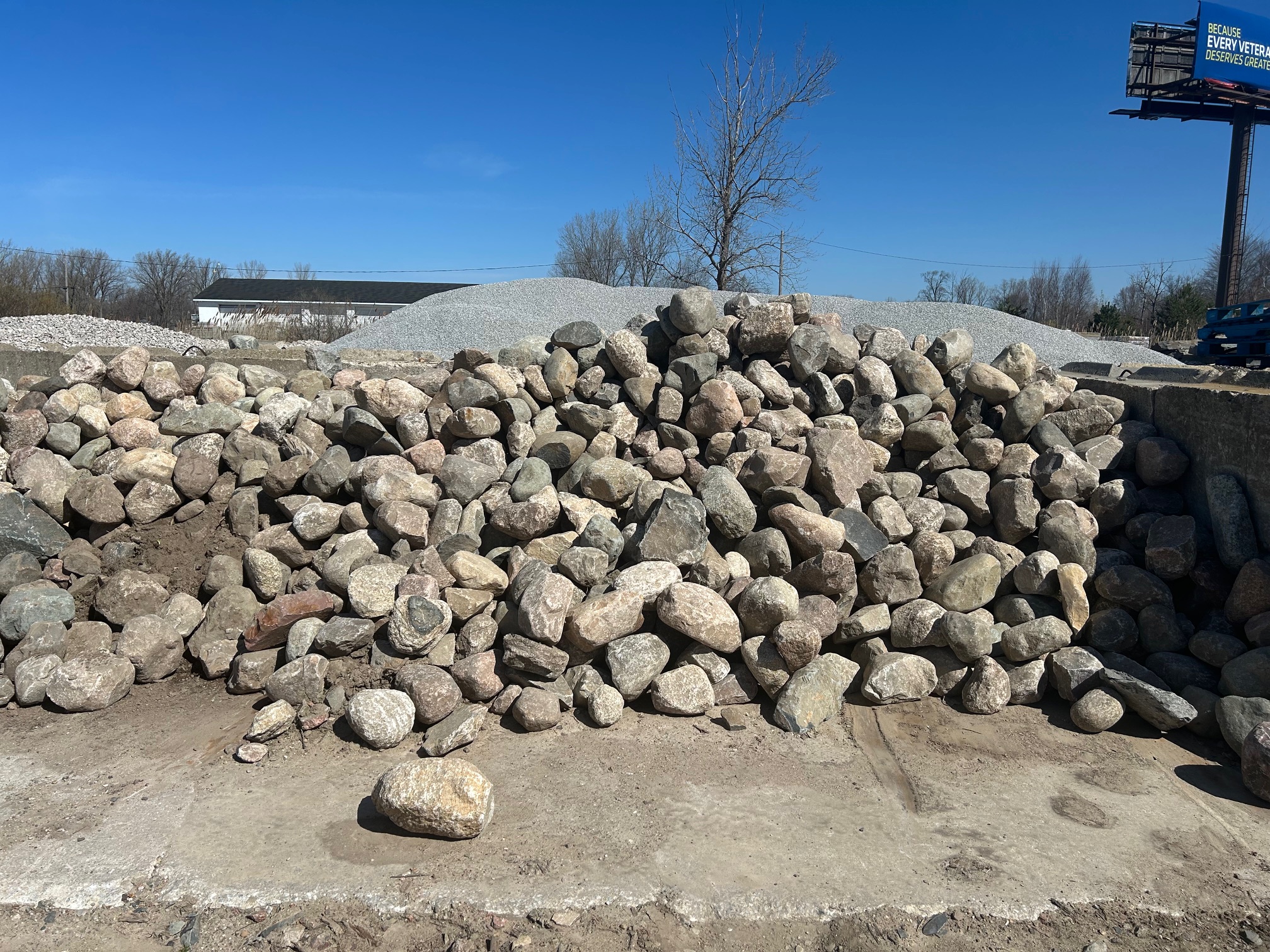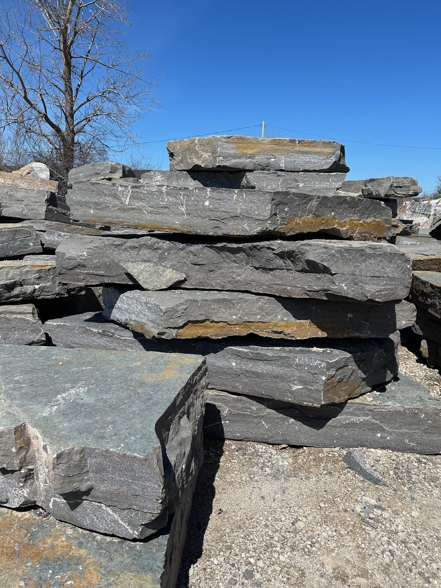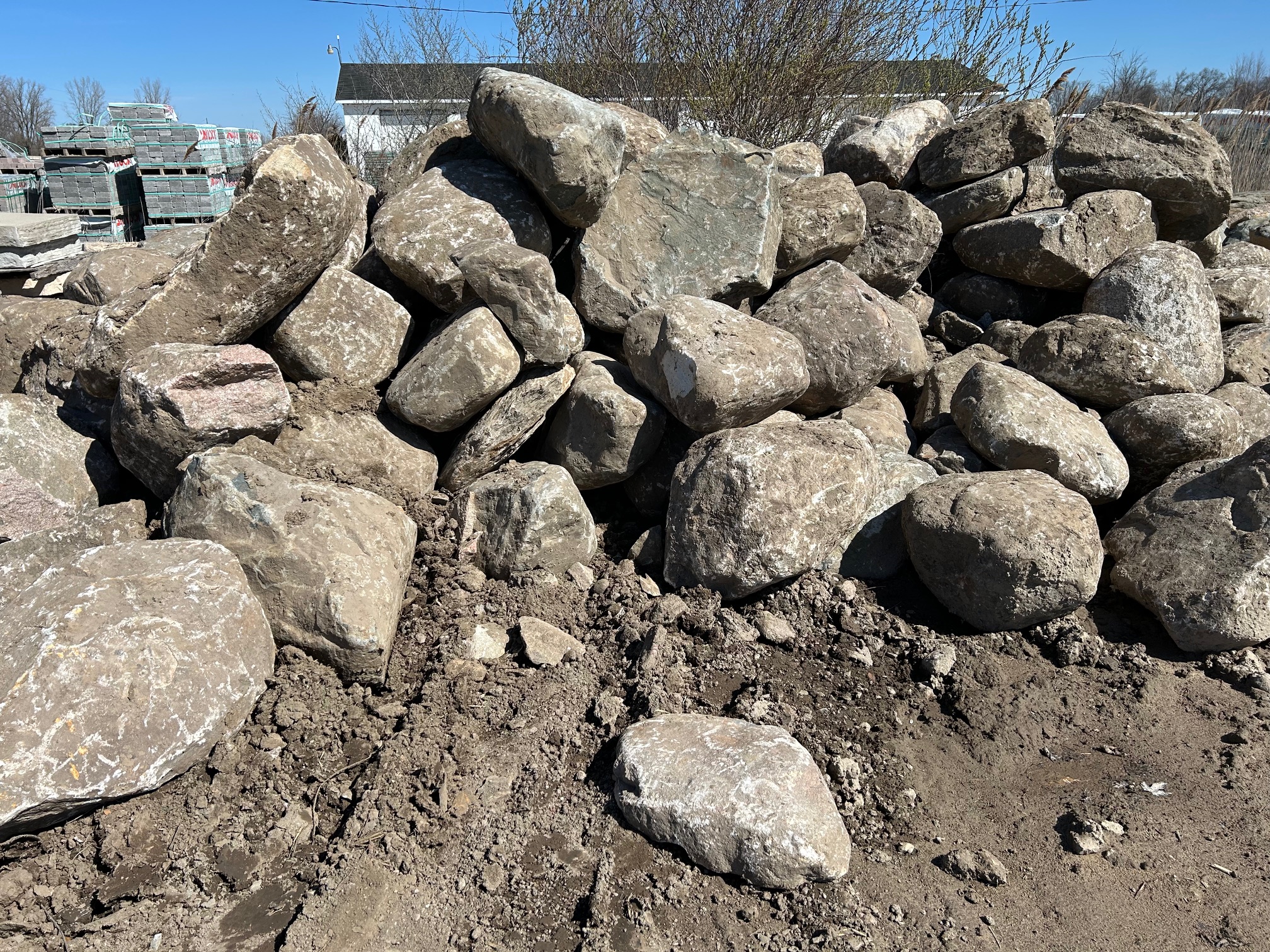 Our largest material on site! These run anywhere from 2ft long to 6ft! They make strong retaining walls and we also offer “steps” made from this rock that have a 7″ thickness.